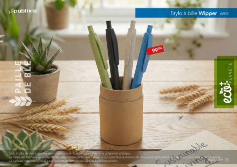 Le corps est fabriqué en paille de blé, une matière première naturelle qui contribue à réduire les émissions polluantes. Encre bleue pour une écriture fiable.